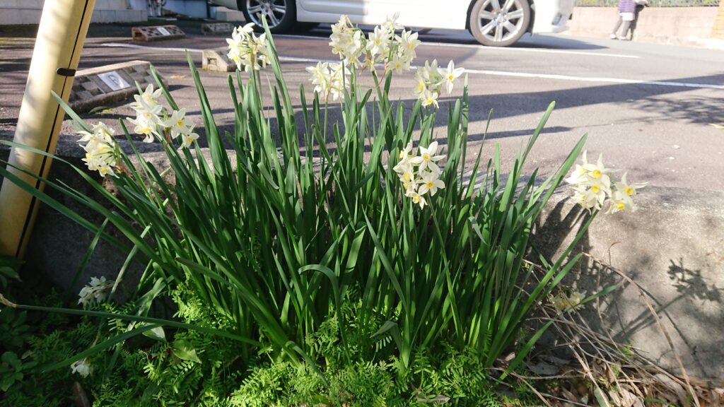 さつき園の敷地内にひっそりと咲いていた水仙の花